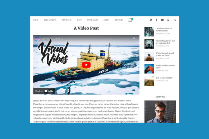 SiteOrigin Unwind is a modern theme for creators. Unwind version 1.9.0 offers expanded support for the Video post type. The Video post type searches for a video at the beginning of the post. If a video is found, the post featured image is replaced by the video on both the archive and single post pages.