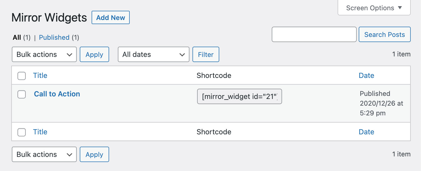 Mirror Widgets can be inserted into any Page Builder page or widget sidebar area using the dedicated widget.