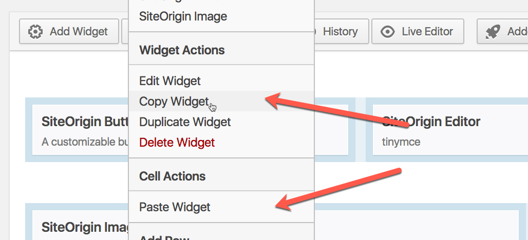 You can now right-click anywhere in the Page Builder interface to bring up the contextual menu and then copy either the row or the widget you’re hovering over.