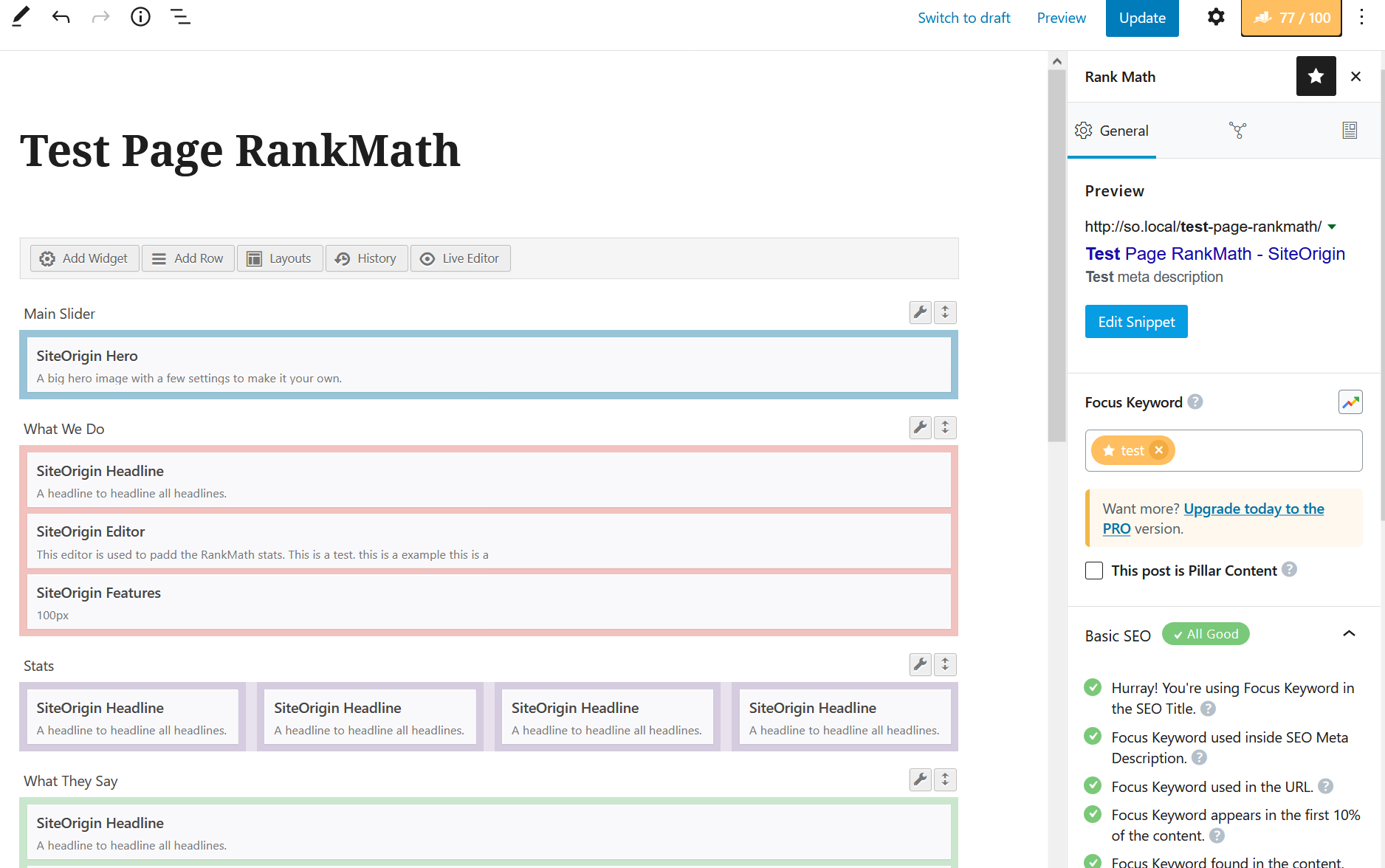Page Builder is now compatible with Rank Math in both the WordPress Classic and Block Editor. Rank Math is a popular up and coming SEO plugin with a strong focus on content analysis for those unfamiliar.