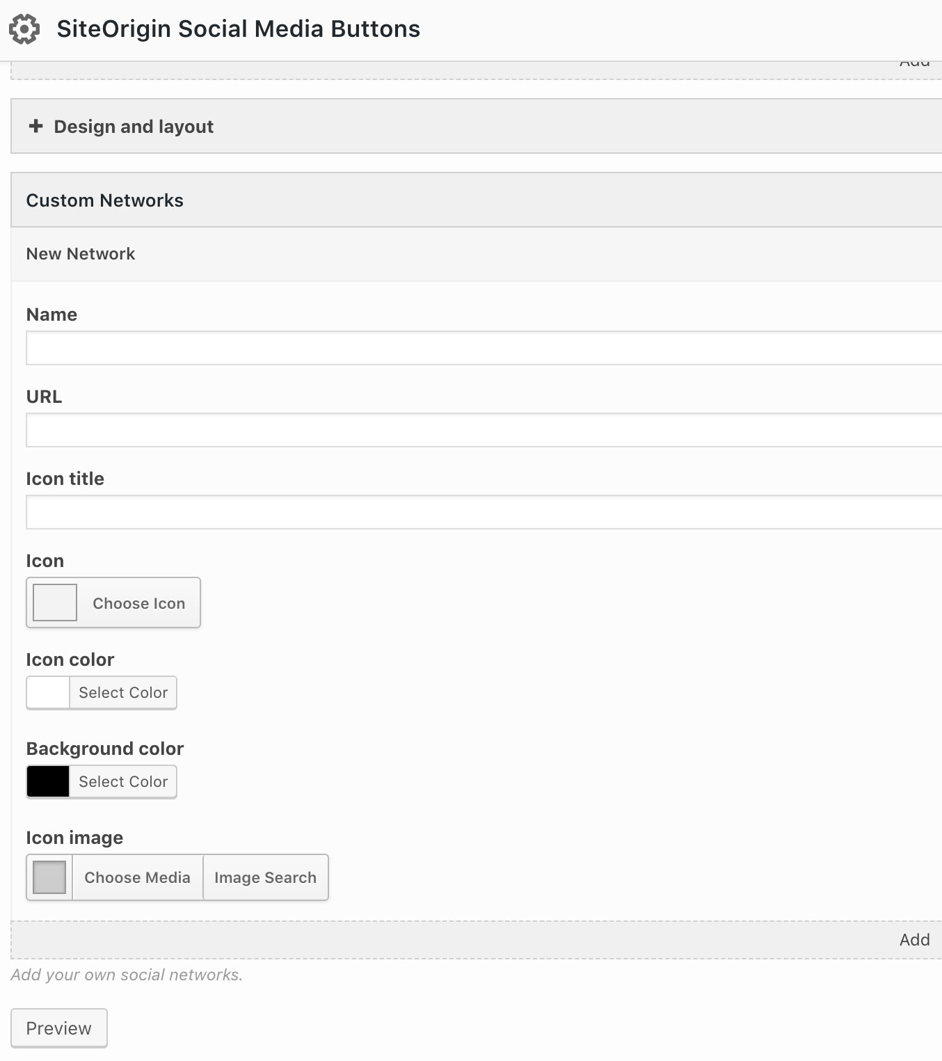 The SiteOrigin Social Media Buttons widget offers 47 networks to choose from while the Branding category in Font Awesome 5.6.3 offers a whopping 414 icons. If you’d like to add a social media button not included in the SiteOrigin Social Media Buttons list or would prefer to use one of the alternative network icons that Font Awesome offers, SiteOrigin Premium includes the ability to create a custom network with the icon of your choice.