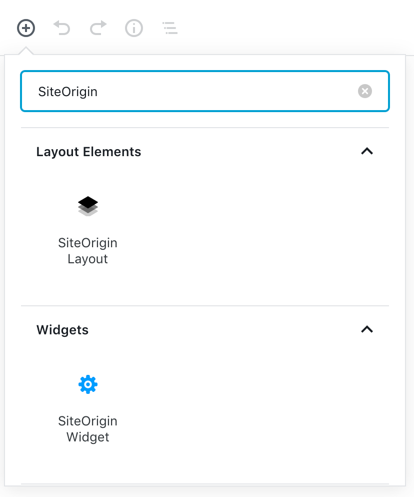 If you’re using SiteOrigin Widgets in the new WordPress Block Editor (Gutenberg), you can use the SiteOrigin Layout Block to insert a Page Builder layout and then add a SiteOrigin Widget. You can also insert a SiteOrigin Widget Block and insert a widget directly. Alternatively, install the Classic Editor plugin and enjoy Page Builder in its familiar interface.